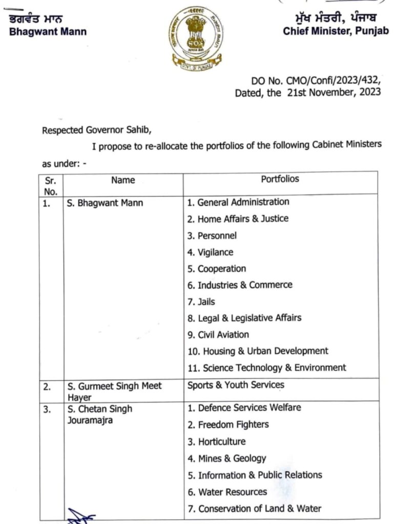 ਬਰਨਾਲਾ,21 ਨਵੰਬਰ (ਨਿਰਮਲ ਸਿੰਘ ਪੰਡੋਰੀ)-ਮੁੱਖ ਮੰਤਰੀ ਭਗਵੰਤ ਮਾਨ ਨੇ ਕੈਬਨਿਟ ਮੰਤਰੀ ਗੁਰਮੀਤ ਸਿੰਘ ਮੀਤ ਹੇਅਰ ਦਾ ਆਪਣੀ ਵਜ਼ਾਰਤ ਵਿੱਚ ਕੱਦ ਘਟਾ ਦਿੱਤਾ ਹੈ। ਮੀਤ ਹੇਅਰ ਕੋਲ ਬਤੌਰ ਕੈਬਨਿਟ ਮੰਤਰੀ ਰੱਖੇ ਗਏ ਵਿਭਾਗਾਂ ਵਿੱਚੋਂ ਸਿਰਫ਼ ਖੇਡ ਅਤੇ ਯੂਥ ਵਿਭਾਗ ਹੀ ਮੀਤ ਹੇਅਰ ਕੋਲ ਛੱਡ ਦਿੱਤਾ ਗਿਆ ਜਦਕਿ ਬਾਕੀ ਸਾਰੇ ਵਿਭਾਗ ਵਾਪਸ ਲੈ ਲਏ ਗਏ ਹਨ । ਮੀਤ ਹੇਅਰ ਤੋਂ ਵਾਪਸ ਲਏ ਵਿਭਾਗ ਕੈਬਨਿਟ ਮੰਤਰੀ ਚੇਤਨ ਸਿੰਘ ਜੌੜਾਮਾਜਰਾ ਨੂੰ ਦਿੱਤੇ ਗਏ ਹਨ ਅਤੇ ਕੁਝ ਵਿਭਾਗ ਮੁੱਖ ਮੰਤਰੀ ਭਗਵੰਤ ਮਾਨ ਨੇ ਆਪਣੇ ਕੋਲ ਰੱਖੇ ਹਨ। ਸਾਇੰਸ ਟੈਕਨਾਲੋਜੀ ਅਤੇ ਵਾਤਾਵਰਣ ਦਾ ਵਿਭਾਗ ਮੀਤ ਹੇਅਰ ਤੋਂ ਵਾਪਸ ਲੈ ਕੇ ਮੁੱਖ ਮੰਤਰੀ ਭਗਵੰਤ ਮਾਨ ਨੇ ਆਪਣੇ ਕੋਲ ਰੱਖਿਆ ਹੈ, ਜਦਕਿ ਮਾਈਨਿੰਗ ਵਿਭਾਗ, ਜਲ ਸਰੋਤ ਵਿਭਾਗ ਵਰਗੇ ਅਹਿਮ ਮਹਿਕਮੇ ਮੀਤ ਹੇਅਰ ਤੋਂ ਵਾਪਸ ਲੈ ਕੇ ਚੇਤਨ ਸਿੰਘ ਜੌੜਾਮਾਜਰਾ ਨੂੰ ਦਿੱਤੇ ਗਏ ਹਨ। ਰਾਜਨੀਤਿਕ ਮਾਹਿਰਾਂ ਵੱਲੋਂ ਮੰਤਰੀ ਮੰਡਲ ਵਿੱਚ ਕੀਤੀ ਅਚਾਨਕ ਇਸ ਤਬਦੀਲੀ ਬਾਰੇ ਹੈਰਾਨੀ ਪ੍ਰਗਟ ਕੀਤੀ ਜਾ ਰਹੀ ਹੈ। ਦੂਜੇ ਪਾਸੇ ਜਦ ਮੀਤ ਹੇਅਰ ਦਾ ਵਜ਼ਾਰਤ ਵਿੱਚ ਕੱਦ ਘਟਣ ਦੀ ਖ਼ਬਰ ਬਰਨਾਲਾ ਪੁੱਜੀ ਤਾਂ ਉਹਨਾਂ ਦੇ ਸਮਰਥਕਾਂ ਵਿੱਚ ਨਿਰਾਸ਼ਤਾ ਵੇਖੀ ਗਈ। ਬਰਨਾਲਾ ਦੇ ਆਮ ਆਦਮੀ ਪਾਰਟੀ ਦੇ ਕਈ ਵੱਡੇ ਆਗੂਆਂ ਨਾਲ ਫੋਨ ‘ਤੇ ਇਸ ਸਬੰਧੀ ਨਜ਼ਰੀਆ ਜਾਣਨ ਦੀ ਕੋਸ਼ਿਸ਼ ਕੀਤੀ ਤਾਂ ਕਿਸੇ ਨੇ ਵੀ ਗੱਲ ਕਰਨ ਤੋਂ ਨਾ ਕਰ ਦਿੱਤੀ। ਇੱਕ ਆਗੂ ਨੇ ਆਪਣਾ ਨਾਮ ਗੁਪਤ ਰੱਖਣ ਦੀ ਸ਼ਰਤ ‘ਤੇ ਐਨਾ ਹੀ ਕਿਹਾ ਕਿ ਇਸ ਬਾਰੇ ਤਾਂ ਭਗਵੰਤ ਮਾਨ ਹੀ ਦੱਸ ਸਕਦਾ ਹੈ। ਭਾਵੇਂ ਕੇ ਵਿਭਾਗ ਇੱਕ ਹੋਵੇ ਜਾਂ ਬਹੁਤੇ ਹੋਣ ਇਸ ਨਾਲ ਕੈਬਨਿਟ ਮੰਤਰੀ ਦੇ ਰੁਤਬੇ ‘ਤੇ ਕੋਈ ਅਸਰ ਨਹੀਂ ਪੈਂਦਾ ਪ੍ਰੰਤੂ ਭਗਵੰਤ ਮਾਨ ਵੱਲੋਂ ਐਨੇ ਵੱਡੇ ਫੈਸਲੇ ਦੀ ਕਿਸੇ ਨੂੰ ਭਿਣਕ ਨਹੀਂ ਲੱਗਣ ਦਿੱਤੀ ਗਈ। ਭਾਵੇਂ ਕਿ ਮੰਤਰੀਆਂ ਨੂੰ ਵਿਭਾਗਾਂ ਦੀ ਵੰਡ ਮੁੱਖ ਮੰਤਰੀ ਦਾ ਅਧਿਕਾਰ ਹੈ ਪ੍ਰੰਤੂ ਇੱਕ ਸਰਕਾਰ ਨੌਜਵਾਨ ਮੰਤਰੀ ਤੋਂ ਇੱਕ ਵਿਭਾਗ ਛੱਡ ਕੇ ਬਾਕੀ ਸਾਰੇ ਵਿਭਾਗ ਅਚਾਨਕ ਵਾਪਸ ਲੈ ਲੈਣ ਤੋਂ ਬਾਅਦ ਕਈ ਤਰ੍ਹਾਂ ਦੀਆਂ ਚਰਚਾਵਾਂ ਹੋ ਰਹੀਆਂ ਹਨ, ਜਿਨਾਂ ਦੀ ਤਫ਼ਸੀਲ ਆਉਣ ਵਾਲੇ ਦਿਨਾਂ ਵਿੱਚ ਸਾਹਮਣੇ ਆ ਸਕਦੀ ਹੈ।