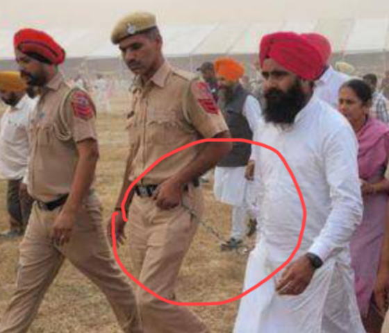 -ਕੁਝ ਦਿਨ ਪਹਿਲਾਂ ਲੁਧਿਆਣਾ ਵਿਖੇ ਹੋਏ ਸਰਪੰਚਾਂ ਦੇ ਸਹੁੰ ਚੁੱਕ ਸਮਾਗਮ ਵਿੱਚ ਸੰਗਰੂਰ ਜ਼ਿਲ੍ਹੇ ਦੇ ਇੱਕ ਪਿੰਡ ਦੇ ਸਰਪੰਚ ਨੇ ਪੁਲਿਸ ਦੀ ਹੱਥਕੜੀ ਲਗਾ ਕੇ ਸਹੁੰ ਚੁੱਕੀ। ਇਹ ਮਾਮਲਾ ਸੁਣਨ ਵਿੱਚ ਅਜੀਬ ਜਿਹਾ ਲੱਗਦਾ ਹੈ ਪ੍ਰੰਤੂ ਇਹ ਸੱਚ ਹੈ ਕਿ ਜਦੋਂ ਕੁਝ ਪੁਲਿਸ ਮੁਲਾਜ਼ਮਾਂ ਦੀ ਹਿਰਾਸਤ ਵਿੱਚ ਇੱਕ ਵਿਅਕਤੀ ਹੱਥਕੜੀ ਸਮੇਤ ਸਰਪੰਚਾਂ ਦੇ ਸਹੁੰ ਚੁੱਕ ਸਮਾਗਮ ਵਿੱਚ ਸ਼ਾਮਿਲ ਹੋਇਆ ਤਾਂ ਉਸਨੇ ਸਾਰੇ ਲੋਕਾਂ ਦਾ ਧਿਆਨ ਖਿੱਚਿਆ। ਸੰਗਰੂਰ ਦੇ ਲਹਿਰਾਗਾਗਾ ਬਲਾਕ ਦੇ ਪਿੰਡ ਰਾਏਧਰਾਣਾ ਦੇ ਸਰਪੰਚ ਚੁਣੇ ਗਏ ਗੁਰਜੀਤ ਸਿੰਘ ਫੌਜੀ ਨੇ ਪੁਲਿਸ ਹਿਰਾਸਤ ਵਿੱਚ ਆ ਕੇ ਸਮੇਤ ਹੱਥਕੜੀ ਸਹੁੰ ਚੁੱਕੀ। ਦਰਅਸਲ, ਗੁਰਜੀਤ ਸਿੰਘ ਐਨਡੀਪੀਐਸ ਦੇ ਇੱਕ ਮਾਮਲੇ ਵਿੱਚ ਸੰਗਰੂਰ ਜੇਲ੍ਹ ਵਿੱਚ ਬੰਦ ਹੈ ਅਤੇ ਉਸਨੇ ਜੇਲ੍ਹ ਵਿੱਚੋਂ ਸਰਪੰਚੀ ਦੀ ਚੋਣ ਲੜੀ ਅਤੇ 625 ਵੋਟਾਂ ਨਾਲ ਜਿੱਤ ਪ੍ਰਾਪਤ ਕੀਤੀ। ਉਸਦੇ ਪਰਿਵਾਰਕ ਮੈਂਬਰਾਂ ਨੇ ਕਿਹਾ ਕਿ ਉਸਨੂੰ ਝੂਠੇ ਕੇਸ ਵਿੱਚ ਗ੍ਰਿਫਤਾਰ ਕੀਤਾ ਗਿਆ ਹੈ ਅਤੇ ਉਹ ਉਸਦੇ ਖਿਲਾਫ਼ ਦਰਜ ਐਫਆਈਆਰ ਨੂੰ ਜਲਦੀ ਹੀ ਅਦਾਲਤ ਵਿੱਚ ਚੁਣੌਤੀ ਦੇਣਗੇ। ਸਰਪੰਚ ਗੁਰਜੀਤ ਸਿੰਘ ਦੇ ਪਰਿਵਾਰਿਕ ਮੈਂਬਰਾਂ ਨੇ ਕਿਹਾ ਕਿ ਉਸ ਦੇ ਖਿਲਾਫ਼ ਝੂਠਾ ਮੁਕੱਦਮਾ ਦਰਜ ਕਰਨ ਤੋਂ ਬਾਅਦ ਸਮੁੱਚੇ ਪਿੰਡ ਵਿੱਚ ਰੋਸ ਦੀ ਲਹਿਰ ਸੀ ਅਤੇ ਪਿੰਡ ਵਾਲਿਆਂ ਨੇ ਉਸ ਨੂੰ ਜੇਲ੍ਹ ਵਿੱਚ ਬੈਠੇ ਹੀ ਸਰਪੰਚੀ ਦੀ ਚੋਣ ਜਿਤਾ ਦਿੱਤੀ।