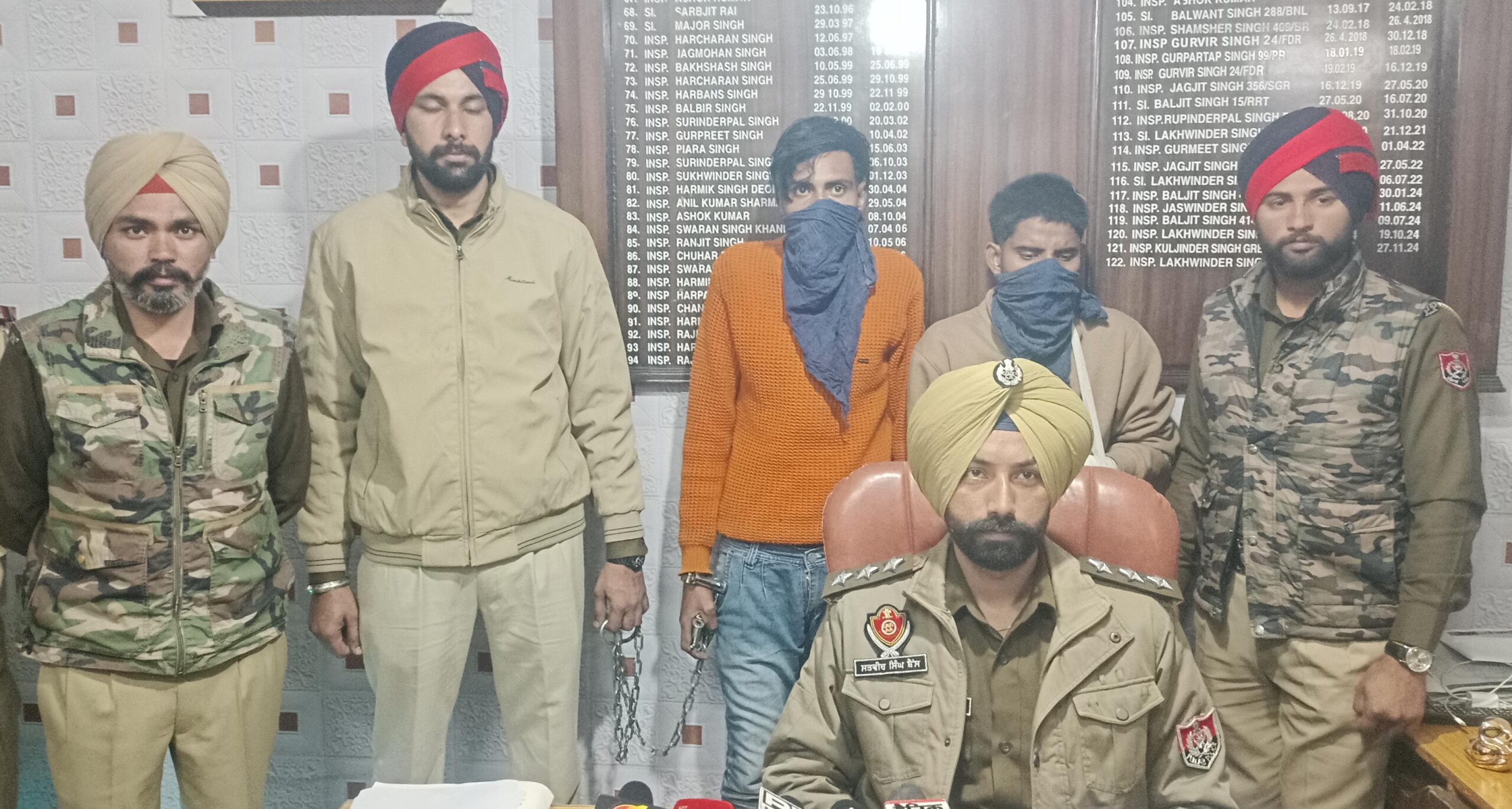 -ਬਰਨਾਲਾ ਪੁਲਿਸ ਨੇ ਸਥਾਨਕ ਬੱਸ ਸਟੈਂਡ ਰੋਡ ‘ਤੇ ਮਿਤੀ 26 ਨਵੰਬਰ ਨੂੰ ਇੱਕ ਦੁਕਾਨ ‘ਤੇ ਲੁੱਟਖੋਹ ਦੀ ਘਟਨਾ ਨੂੰ ਅੰਜਾਮ ਦੇਣ ਵਾਲੇ ਦੋਸ਼ੀਆਂ ਨੂੰ ਗ੍ਰਿਫ਼ਤਾਰ ਕਰਨ ਵਿੱਚ ਸਫਲਤਾ ਪ੍ਰਾਪਤ ਕੀਤੀ ਹੈ। ਇਸ ਸਬੰਧੀ ਅੱਜ ਥਾਣਾ ਸਿਟੀ ਵਿਖੇ ਪ੍ਰੈੱਸ ਕਾਨਫਰੰਸ ਦੌਰਾਨ ਜਾਣਕਾਰੀ ਦਿੰਦੇ ਹੋਏ ਡੀਐਸਪੀ ਸਤਬੀਰ ਸਿੰਘ ਬੈਂਸ ਨੇ ਦੱਸਿਆ ਕਿ 26 ਨਵੰਬਰ ਨੂੰ ਬਰਨਾਲਾ ਬੱਸ ਸਟੈਂਡ ਰੋਡ ‘ਤੇ ਇੱਕ ਮਨੀ ਟ੍ਰਾਂਸਫਰ ਅਤੇ ਡਿਸ ਰਿਚਾਰਜ ਦੀ ਦੁਕਾਨ ‘ਤੇ ਚਾਰ ਨਾਮਲੂਮ ਵਿਅਕਤੀ ਆਏ ਜਿਨਾਂ ਵਿੱਚੋਂ ਤਿੰਨ ਦੁਕਾਨ ਦੇ ਅੰਦਰ ਗਏ ਤੇ ਇੱਕ ਬਾਹਰ ਖੜਾ ਰਿਹਾ। ਉਨਾਂ ਨੇ ਦੁਕਾਨਦਾਰ ਦੀ ਕੁੱਟਮਾਰ ਕੀਤੀ ਅਤੇ ਉਸ ਦਾ ਮੋਬਾਈਲ ਆਈ ਫੋਨ 15 ਪਰੋ ਮੈਕਸ ਖੋਹ ਕੇ ਲੈ ਗਏ, ਜਿਸ ਤੋਂ ਬਾਅਦ ਦੁਕਾਨਦਾਰ ਜਗਦੀਪ ਸਿੰਘ ਪੁੱਤਰ ਅਵਤਾਰ ਸਿੰਘ ਵਾਸੀ ਪੱਤੀ ਰੋਡ ਨੇ ਪੁਲਿਸ ਨੂੰ ਸੂਚਨਾ ਦਿੱਤੀ ਜਿਸ ਸਬੰਧੀ ਮੁਕੱਦਮਾ ਨੰਬਰ 544 ਮਿਤੀ 27 ਨਵੰਬਰ ਥਾਣਾ ਸਿਟੀ ਬਰਨਾਲਾ ਵਿਖੇ ਚਾਰ ਵਿਅਕਤੀਆਂ ਦੇ ਖ਼ਿਲਾਫ਼ ਦਰਜ ਕੀਤਾ ਗਿਆ ਸੀ। ਡੀਐਸਪੀ ਬੈਂਸ ਨੇ ਦੱਸਿਆ ਕਿ ਇਸ ਘਟਨਾ ਤੋਂ ਬਾਅਦ ਮਾਨਯੋਗ ਐਸਐਸਪੀ ਬਰਨਾਲਾ ਨੇ ਸੀਆਈਏ ਇੰਚਾਰਜ ਇੰਸਪੈਕਟਰ ਬਲਜੀਤ ਸਿੰਘ, ਥਾਣਾ ਸਿਟੀ ਦੇ ਇੰਚਾਰਜ ਇੰਸਪੈਕਟਰ ਲਖਵਿੰਦਰ ਸਿੰਘ ਅਤੇ ਪੁਲਿਸ ਚੌਂਕੀ ਬੱਸ ਸਟੈਂਡ ਦੇ ਇੰਚਾਰਜ ਸਹਾਇਕ ਥਾਣੇਦਾਰ ਬਲਵਿੰਦਰ ਸਿੰਘ ਦੀਆਂ ਟੀਮਾਂ ਦਾ ਗਠਨ ਕੀਤਾ ਅਤੇ ਦੌਰਾਨੇ ਪੜ੍ਹਤਾਲ ਇਸ ਮਾਮਲੇ ਵਿੱਚ ਮਨਦੀਪ ਸਿੰਘ ਬੱਬੂ ਪੁੱਤਰ ਧੰਨਾ ਸਿੰਘ, ਬਲਕਾਰ ਸਿੰਘ ਗੋਰੂ ਪੁੱਤਰ ਨਿੱਕਾ ਸਿੰਘ, ਜਗਸੀਰ ਸਿੰਘ ਜੱਗਾ ਪੁੱਤਰ ਲਛਮਣ ਸਿੰਘ ਵਾਸੀਆਨ ਮਹਿਤਾ ਅਤੇ ਹਰਮੀਤ ਸਿੰਘ ਉਰਫ ਧਾਕੜ ਪੁੱਤਰ ਸਵਰਨ ਸਿੰਘ ਵਾਸੀ ਬਾਜੀਗਰ ਬਸਤੀ ਤਪਾ ਮੰਡੀ ਅਤੇ ਇਸ ਘਟਨਾ ਤੋਂ ਪਹਿਲਾਂ ਦੁਕਾਨ ਦੀ ਰੇਕੀ ਕਰਨ ਵਾਲੇ ਰਿੰਕੇ ਨੂੰ ਟਰੇਸ ਕਰਕੇ ਮੁਕੱਦਮੇ ‘ਚ ਨਾਮਜ਼ਦ ਕੀਤਾ ਗਿਆ। ਉਹਨਾਂ ਦੱਸਿਆ ਕਿ ਉਕਤਾਨ ਦੋਸ਼ੀਆਂ ਵਿੱਚੋਂ ਮਨਦੀਪ ਸਿੰਘ ਬੱਬੂ ਅਤੇ ਹਰਮੀਤ ਸਿੰਘ ਉਰਫ ਧਾਕੜ ਨੂੰ ਪੁਲਿਸ ਨੇ ਗ੍ਰਿਫ਼ਤਾਰ ਕਰ ਲਿਆ ਹੈ ਜਦਕਿ ਬਾਕੀ ਦੋਸ਼ੀਆਂ ਦੀ ਭਾਲ ਜਾਰੀ ਹੈ ਜਿਨਾਂ ਨੂੰ ਜਲਦੀ ਗ੍ਰਿਫ਼ਤਾਰ ਕਰ ਲਿਆ ਜਾਵੇਗਾ। ਉਹਨਾਂ ਦੱਸਿਆ ਕਿ ਗ੍ਰਿਫ਼ਤਾਰ ਕੀਤੇ ਦੋਸ਼ੀਆਂ ਤੋਂ ਮੋਬਾਈਲ ਆਈਫੋਨ 15 ਪ੍ਰੋ ਮੈਕਸ ਅਤੇ ਵਾਰਦਾਤ ਸਮੇਂ ਵਰਤਿਆ ਗਿਆ ਮੋਟਰਸਾਈਕਲ ਵੀ ਬਰਾਮਦ ਕੀਤਾ ਗਿਆ ਹੈ। ਡੀਐਸਪੀ ਬੈਂਸ ਨੇ ਦੱਸਿਆ ਕਿ ਗ੍ਰਿਫ਼ਤਾਰ ਕੀਤੇ ਗਏ ਦੋਸ਼ੀਆਂ ਵਿੱਚੋਂ ਮਨਦੀਪ ਸਿੰਘ ਬੱਬੂ ‘ਤੇ ਪਹਿਲਾਂ ਵੀ ਤਪਾ ਅਤੇ ਧਨੌਲਾ ਵਿਖੇ ਵੱਖ-ਵੱਖ ਧਾਰਾਵਾਂ ਤਹਿਤ ਅੱਠ ਮੁਕੱਦਮੇ ਦਰਜ ਹਨ।