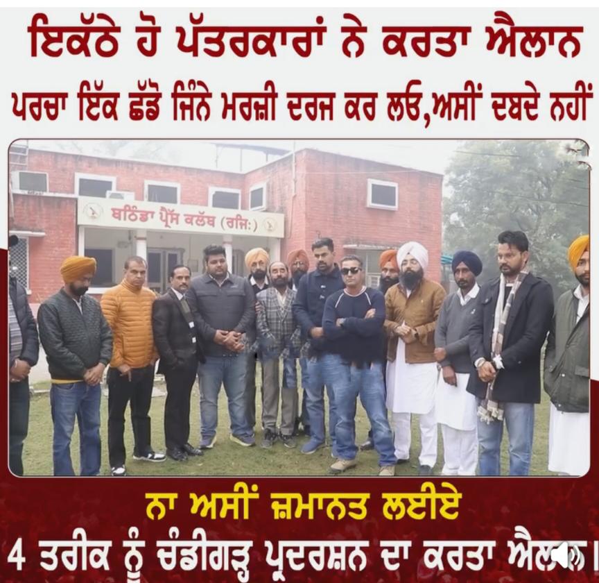 -ਪੰਜਾਬ ਸਰਕਾਰ ਵੱਲੋਂ ਪੰਜਾਬ ਦੇ ਸੀਨੀਅਰ ਪੱਤਰਕਾਰ ਮਨਿੰਦਰਜੀਤ ਸਿੰਘ ਸਿੱਧੂ, ਮਿੰਟੂ ਗੁਰੂਸਰੀਆ, ਮਨਦੀਪ ਮੱਕੜ, ਆਰਟੀਆਈ ਐਕਟੀਵਿਸਟ ਮਾਣਕ ਗੋਇਲ ਸਮੇਤ 10 ਜਣਿਆਂ ‘ਤੇ ਮੁਕੱਦਮਾ ਦਰਜ ਕਰਨ ਤੋਂ ਬਾਅਦ ਜਿੱਥੇ ਸਮੁੱਚੇ ਪੰਜਾਬ ‘ਚ ਸਰਕਾਰ ਦੇ ਇਸ ਕਦਮ ਦੀ ਨਿੰਦਾ ਹੋ ਰਹੀ ਹੈ ਉੱਥੇ ਪੱਤਰਕਾਰਾਂ ਨੇ ਵੀ ਸੰਘਰਸ਼ ਦਾ ਬਿਗਲ ਵਜਾ ਦਿੱਤਾ ਹੈ। ਉਕਤ ਪੱਤਰਕਾਰਾਂ ਦੇ ਖ਼ਿਲਾਫ਼ ਲੁਧਿਆਣਾ ਦੇ ਇੱਕ ਪੁਲਿਸ ਸਟੇਸ਼ਨ ਵਿੱਚ ਐਫਆਈਆਰ ਦੀ ਭਿਣਕ ਲੱਗਣ ਤੋਂ ਬਾਅਦ ਬਠਿੰਡਾ ਵਿਖੇ ਸੀਨੀਅਰ ਪੱਤਰਕਾਰ ਬਖਤੌਰ ਸਿੰਘ ਢਿੱਲੋਂ ਦੀ ਅਗਵਾਈ ਹੇਠ ਹੋਈ ਇੱਕ ਹੰਗਾਮੀ ਮੀਟਿੰਗ ਵਿੱਚ ਐਫਆਈਆਰ ਵਿੱਚ ਨਾਮਜ਼ਦ ਮਿੰਟੂ ਗੁਰੂਸਰੀਆ, ਮਨਜਿੰਦਰਜੀਤ ਸਿੱਧੂ ਨੇ ਸਰਕਾਰ ਵੱਲੋਂ ਕੀਤੀ ਕਾਰਵਾਈ ‘ਤੇ ਤਿੱਖੀ ਪ੍ਰਤੀਕਿਰਿਆ ਕਰਦੇ ਹੋਏ ਕਿਹਾ ਕਿ ਹੁਣ ਪੰਜਾਬ ਸਰਕਾਰ ਨੂੰ ਉਸ ਦੀ ਭਾਸ਼ਾ ਵਿੱਚ ਹੀ ਜਵਾਬ ਦਿੱਤਾ ਜਾਵੇਗਾ। ਸਰਕਾਰ ਵੱਲੋਂ ਦਰਜ ਕੀਤੀ ਐਫਆਈਆਰ ਵਿੱਚ ਨਾਮਜ਼ਦ ਪੱਤਰਕਾਰਾਂ ਨੇ ਕਿਹਾ ਕਿ ਉਹ ਇਸ ਮਾਮਲੇ ਵਿੱਚ ਜ਼ਮਾਨਤ ਨਹੀਂ ਕਰਾਉਣਗੇ ਅਤੇ ਗ੍ਰਿਫ਼ਤਾਰੀ ਲਈ ਹਮੇਸ਼ਾ ਹਾਜ਼ਰ ਰਹਿਣਗੇ। ਉਹਨਾਂ ਕਿਹਾ ਕਿ ਜਦੋਂ ਪੰਜਾਬ ਪੁਲਿਸ ਉਹਨਾਂ ਨੂੰ ਗ੍ਰਿਫ਼ਤਾਰ ਕਰਨਾ ਚਾਹੇ ਤਾਂ ਉਨਾਂ ਨੂੰ ਫੋਨ ਕਰ ਦਿੱਤਾ ਜਾਵੇ ਤੇ ਉਹ ਆਪਣੀ ਲੋਕੇਸ਼ਨ ਪੰਜਾਬ ਪੁਲਿਸ ਨੂੰ ਭੇਜ ਦੇਣਗੇ। ਪੰਜਾਬ ਸਰਕਾਰ ਦੇ ਖ਼ਿਲਾਫ਼ ਅਗਲੇ ਸੰਘਰਸ਼ ਦਾ ਐਲਾਨ ਕਰਦੇ ਹੋਏ ਪੱਤਰਕਾਰ ਸਾਥੀਆਂ ਨੇ ਦੱਸਿਆ ਕਿ 4 ਜਨਵਰੀ ਨੂੰ ਚੰਡੀਗੜ੍ਹ ਵਿਖੇ ਪੰਜਾਬ ਦੇ ਪੱਤਰਕਾਰਾਂ ਤੇ ਜਨਤਕ ਜਥੇਬੰਦੀਆਂ ਦੇ ਆਗੂਆਂ ਦੀ ਇੱਕ ਸੰਕੇਤਿਕ ਮੀਟਿੰਗ ਬੁਲਾਈ ਗਈ ਜਿਸ ਵਿੱਚ ਅਗਲੇ ਐਕਸ਼ਨ ਲਈ ਰੂਪਰੇਖਾ ਉਲੀਕੀ ਜਾਵੇਗੀ ਅਤੇ ਉਸ ਤੋਂ ਬਾਅਦ 10 ਜਨਵਰੀ ਨੂੰ ਬਠਿੰਡਾ ਵਿਖੇ ਪੱਤਰਕਾਰਾਂ ਦਾ ਇਕੱਠ ਕੀਤਾ ਜਾਵੇਗਾ। ਦੂਜੇ ਪਾਸੇ ਪੱਤਰਕਾਰਾਂ ਦੀ ਸਿਰਮੌਰ ਜਥੇਬੰਦੀ ਪੰਜਾਬ ਐਂਡ ਚੰਡੀਗੜ੍ਹ ਜਰਨਲਿਸਟਸ ਯੂਨੀਅਨ ਨੇ ਇਸ ਮਾਮਲੇ ਨੂੰ ਗੰਭੀਰ ਮੰਨਦੇ ਹੋਏ ਪੰਜਾਬ ਦੇ ਸਾਰੇ ਡਿਪਟੀ ਕਮਿਸ਼ਨਰਾਂ ਰਾਹੀਂ ਚੇਅਰਮੈਨ ਪ੍ਰੈੱਸ ਕੌਂਸਲ ਆਫ਼ ਇੰਡੀਆ ਤੇ ਸਕੱਤਰ ਪ੍ਰੈੱਸ ਕੌਂਸਲ ਆਫ਼ ਇੰਡੀਆ ਦੇ ਨਾਮ ਮੰਗ ਪੱਤਰ ਭੇਜਣ ਦਾ ਫੈਸਲਾ ਕੀਤਾ ਹੈ। ਪੰਜਾਬ ਦੇ ਸਰਕਾਰੀ ਹੈਲੀਕਾਪਟਰ ਦੀ ਵਰਤੋਂ ਸਬੰਧੀ ਸਿਰਫ ਸਵਾਲ ਪੁੱਛਣ ‘ਤੇ ਹੀ ਪੱਤਰਕਾਰਾਂ ਅਤੇ ਬਲੌਗਰਾਂ ‘ਤੇ ਪੁਲਿਸ ਕਾਰਵਾਈ ਕਰਨ ਤੋਂ ਰੋਹ ਵਿੱਚ ਆਈਆਂ ਪੱਤਰਕਾਰ ਜਥੇਬੰਦੀਆਂ ਅਤੇ ਜਨਤਕ ਜਥੇਬੰਦੀਆਂ ਦੇ ਆਗੂਆਂ ਦੇ ਤੇਵਰਾਂ ਨੂੰ ਵੇਖਦੇ ਹੋਏ ਇਹ ਮਾਮਲਾ ਭਖਣ ਦੇ ਆਸਾਰ ਹਨ ਅਤੇ ਪੰਜਾਬ ਸਰਕਾਰ ਨੂੰ ਆਪਣੀ ਇਸ ਕਾਰਵਾਈ ਦੇ ਕਾਰਨ ਜਨਤਕ ਰੋਹ ਦਾ ਸਾਹਮਣਾ ਕਰਨਾ ਪਵੇਗਾ।
