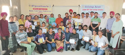 ਐਸ ਡੀ ਕਾਲਜ ਵਿਖੇ ਦੋ ਦਿਨਾਂ ‘ਵਿਗਿਆਨ ਮੇਲੇ’ ਦਾ ਆਯੋਜਨ ਕੀਤਾ ਗਿਆ। ਫਿਜ਼ਿਕਸ ਅਤੇ ਮੈਥੇਮੈਟਿਕਸ ਵਿਭਾਗ ਦੀ ਅਗਵਾਈ ਵਿਚ ‘ਡੀਬੀਟੀ ਸਟਾਰ ਕਾਲੇਜ ਸਕੀਮ’ ਤਹਿਤ ਫ਼ਿਜ਼ਿਕਸ, ਮੈਥੇਮੈਟਿਕਸ ਅਤੇ ਕੈਮਿਸਟਰੀ ਵਿਭਾਗਾਂ ਵੱਲੋਂ ਕੁਇਜ਼, ਪੋਸਟਰ ਮੇਕਿੰਗ ਅਤੇ ਮਾਡਲ/ਪ੍ਰੋਜੈਕਟ ਬਣਾਉਣ ਦੇ ਮੁਕਾਬਲੇ ਕਰਵਾਏ ਗਏ। ਇਸ ਸਮਾਗਮ ਵਿਚ ਮੁੱਖ ਮਹਿਮਾਨ ਦੇ ਤੌਰ ’ਤੇ ਸਰਕਾਰੀ ਸੀਨੀਅਰ ਸੈਕੰਡਰੀ ਸਕੂਲ, ਕੱਟੂ ਦੇ ਪਿ੍ਸੀਪਲ ਅਤੇ ਕਾਲਜ ਦੇ ਸਾਬਕਾ ਵਿਦਿਆਰਥੀ ਸ੍ਰੀ ਰਾਕੇਸ਼ ਕੁਮਾਰ ਨੇ ਸ਼ਿਰਕਤ ਕੀਤੀ। ਉਹਨਾਂ ਆਪਣੇ ਸੰਬੋਧਨ ਵਿਚ ਕਿਹਾ ਕਿ ਵਿਦਿਆਰਥੀਆਂ ਨੂੰ ਕਿਸੇ ਵਿਸ਼ੇ ਦੇ ਸਤਹਿ ਅਧਿਐਨ ਦੀ ਬਜਾਏ ਅਸਲ ਮੰਤਵਾਂ ਬਾਰੇ ਜਾਣੂ ਕਰਵਾਇਆ ਜਾਣਾ ਚਾਹੀਦਾ ਹੈ। ਉਹਨਾਂ ਅਜਿਹਾ ਪ੍ਰੋਗਰਾਮ ਕਰਵਾਉਣ ਲਈ ਕਾਲਜ ਦੀ ਪ੍ਰਸ਼ੰਸਾ ਕੀਤੀ। ਪਿ੍ਸੀਪਲ ਡਾ. ਰਮਾ ਸ਼ਰਮਾ ਨੇ ਕਿਹਾ ਕਿ ਵਿਦਿਆਰਥੀ ਸ੍ਰੀ ਰਾਕੇਸ਼ ਕੁਮਾਰ ਵਰਗੇ ਉੱਘੇ ਸਿੱਖਿਆ ਸ਼ਾਸਤਰੀ ਤੋਂ ਜ਼ਰੂਰ ਸੇਧ ਲੈਣਗੇ। ਉਹਨਾਂ ਕਿਹਾ ਕਿ ਵਿਦਿਆਰਥੀਆਂ ਦੇ ਸਰਬਪੱਖੀ ਵਿਕਾਸ ਲਈ ਅਜਿਹੇ ਸਾਇੰਸ ਮੇਲੇ ਬਹੁਤ ਜ਼ਰੂਰੀ ਹਨ। ਡਾ. ਵੰਦਨਾ ਕੁਕਰੇਜਾ ਅਤੇ ਡਾ. ਰੀਤੂ ਅੱਗਰਵਾਲ ਨੇ ਮੁਕਾਬਲਿਆਂ ਦੀ ਜੱਜਮੈਂਟ ਕੀਤੀ। ਕੁਇਜ਼ ਮੁਕਾਬਲੇ ’ਚ ਟੀਮ ‘ਏ’ (ਪਰਮਪ੍ਰੀਤ, ਨਵਦੀਪ ਕੁਮਾਰ ਅਤੇ ਨਮਿਸ਼ਾ) ਨੇ ਪਹਿਲਾ ਸਥਾਨ ਹਾਸਲ ਕੀਤਾ ਹੈ। ਟੀਮ ‘ਈ’ (ਨਿਖਿਲ, ਹਰਸਿਮਰਨ ਅਤੇ ਕੁਸਮ ਅੰਜਲੀ) ਨੇ ਦੂਜਾ ਅਤੇ ਟੀਮ ‘ਡੀ’ (ਵਿਕਾਸ ਕੁਮਾਰ, ਪਰਾਚੀ ਅਤੇ ਹਿਮਾਂਸ਼ੂ) ਨੇ ਤੀਜਾ ਸਥਾਨ ਹਾਸਲ ਕੀਤਾ ਹੈ। ਇਸੇ ਤਰਾਂ ਪੋਸਟਰ ਮੇਕਿੰਗ ਮੁਕਾਬਲੇ ਵਿਚ ਜਸਪ੍ਰੀਤ ਕੌਰ, ਹਰਮਨਪ੍ਰੀਤ ਕੌਰ ਅਤੇ ਇੰਦਰਪਾਲ ਕੌਰ ਨੇ ਕ੍ਰਮਵਾਰ ਪਹਿਲਾ, ਦੂਜਾ ਅਤੇ ਤੀਜਾ ਸਥਾਨ ਹਾਸਲ ਕੀਤਾ ਹੈ। ਪੋਸਟਰ/ ਮਾਡਲ ਬਣਾਉਣ ’ਚ ਨਿਖਿਲ ਕੁਮਾਰ, ਵਿਕਾਸ ਕੁਮਾਰ ਅਤੇ ਜਸ਼ਨਦੀਪ ਕੌਰ ਦੀ ਟੀਮ ਨੇ ਪਹਿਲਾ, ਯੁਵਰਾਜ ਸਿੰਘ ਅਤੇ ਪੁਸ਼ਕਰ ਸਿੰਗਲਾ ਦੀ ਟੀਮ ਨੇ ਦੂਜਾ ਅਤੇ ਸਨੇਹ ਕਮਲ ਕੌਰ ਅਤੇ ਹਰਤੇਸ਼ ਕੁਮਾਰ ਦੀ ਟੀਮ ਨੇ ਤੀਜਾ ਸਥਾਨ ਹਾਸਲ ਕੀਤਾ। ਪ੍ਰੋ. ਉਪਾਸਨਾ ਨੇ ਧੰਨਵਾਦੀ ਸ਼ਬਦ ਕਹੇ। ਸਟੇਜ ਸਕੱਤਰ ਦੇ ਫ਼ਰਾਇਜ਼ ਡਾ. ਬਲਤੇਜ ਸਿੰਘ ਨੇ ਅਦਾ ਕੀਤੇ। ਇਸ ਮੌਕੇ ਡੀ.ਬੀ.ਟੀ ਕੋਆਰਡੀਨੇਟਰ ਡਾ. ਕੁਲਭੂਸ਼ਨ ਰਾਣਾ ਸਮੇਤ ਵੱਡੀ ਗਿਣਤੀ ਵਿਚ ਅਧਿਆਪਕ ਅਤੇ ਵਿਦਿਆਰਥੀ ਹਾਜ਼ਰ ਸਨ। ਕਾਲਜ ਪ੍ਰਬੰਧਕ ਕਮੇਟੀ ਦੇ ਪ੍ਰਧਾਨ ਡਾ. ਅਨੀਸ਼ ਪ੍ਰਕਾਸ਼, ਉਪ ਪ੍ਰਧਾਨ ਨਰੇਸ਼ ਸਿੰਗਲਾ, ਜਨਰਲ ਸਕੱਤਰ ਜਤਿੰਦਰ ਨਾਥ ਸ਼ਰਮਾ, ਡਾਇਰੈਕਟਰ ਸ੍ਰੀ ਹਰਦਿਆਲ ਸਿੰਘ ਅੱਤਰੀ ਅਤੇ ਵਿੱਤ ਸਕੱਤਰ ਡਾ. ਮੁਕੰਦ ਲਾਲ ਬਾਂਸਲ ਨੇ ਇਹ ਪ੍ਰੋਗਰਾਮ ਕਰਵਾਉਣ ਲਈ ਦੋਵੇਂ ਵਿਭਾਗਾਂ ਨੂੰ ਵਧਾਈ ਦਿੱਤੀ ਹੈ।