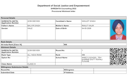 -ਸਰੇਸ਼ਟਾ ਪ੍ਰੀਖਿਆ ’ਚੋਂ ਆਲ ਇੰਡੀਆ ਪੱਧਰ ’ਤੇ 986ਵਾਂ ਰੈਂਕ ਹਾਸਿਲ ਕੀਤਾ