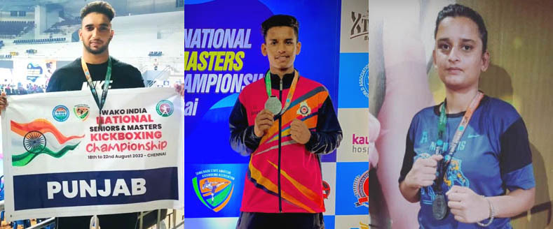 ਜ਼ਿਲ੍ਹਾ ਬਰਨਾਲਾ ਦੇ ਤਿੰਨ ਖਿਡਾਰੀਆਂ ਨੇ ਕਿੱਕ ਬਾਕਸਿੰਗ ਮੁਕਾਬਲੇ – ਵਾਕੋ ਇੰਡੀਆ ਨੈਸ਼ਨਲ ਸੀਨੀਅਰਜ਼ ਅਤੇ ਮਾਸਟਰਜ਼ ਕਿੱਕ ਬਾਕਸਿੰਗ ਚੈਂਪੀਅਨਸ਼ਿਪ – ਚ ਸ਼ਾਨਦਾਰ ਪ੍ਰਦਰਸ਼ਨ ਵਿਖਾ ਕੇ ਚਾਂਦੀ ਅਤੇ ਕਾਂਸੀ ਦੇ ਤਮਗੇ ਜਿੱਤੇ ਹਨ । ਇਸ ਸਬੰਧੀ ਜਾਣਕਾਰੀ ਦਿੰਦਿਆਂ ਜ਼ਿਲ੍ਹਾ ਖੇਡ ਅਫਸਰ ਬਲਵਿੰਦਰ ਸਿੰਘ ਅਤੇ ਕਿੱਕ ਬਾਕਸਿੰਗ ਦੇ ਕੋਚ ਜਸਪ੍ਰੀਤ ਸਿੰਘ ਢੀਂਡਸਾ, ਜਿਹੜੇ ਕਿ ਧਨੌਲਾ ਵਿਖੇ ਕਿੱਕ ਬਾਕਸਿੰਗ ਦਾ ਸੈਂਟਰ ਚਲਾ ਰਹੇ ਹਨ, ਨੇ ਦੱਸਿਆ ਕਿ ਇਨ੍ਹਾਂ ਖਿਡਾਰੀਆਂ ਦੀ ਅਣਥੱਕ ਮੇਹਨਤ ਅਤੇ ਵਿਭਾਗ ਵਲੋਂ ਦਿੱਤੇ ਗਏ ਮਾਰਗ ਦਰਸ਼ਨ ਦੇ ਚਲਦਿਆਂ ਖਿਡਾਰੀ ਇਹ ਤਮਗੇ ਜਿੱਤ ਸਕੇ । ਇਹ ਪ੍ਰਤੀਯੋਗਿਤਾ ਚੇੱਨਈ ਵਿਖੇ 18 ਅਗਸਤ ਤੋਂ 22 ਅਗਸਤ ਤੱਕ ਕਰਵਾਈ ਗਈ । ਖਿਡਾਰੀ ਆਕਾਸ਼ਦੀਪ ਸਿੰਘ (ਵਾਸੀ ਪਿੰਡ ਬਡਬਰ) ਨੇ -91 ਕਿਲੋ ਵਰਗ ਵਿਚ ਕਾਂਸੀ ਤਮਗਾ ਹਾਸਲ ਕੀਤਾ । ਖਿਡਾਰੀ ਗੁਰਪ੍ਰੀਤ ਸਿੰਘ ਨੇ -54 ਕਿਲੋ ਵਰਗ ਵਿੱਚ ਚਾਂਦੀ ਤਮਗਾ ਹਾਸਲ ਕੀਤਾ ਅਤੇ ਖਿਡਾਰੀ ਸੁਖਬੀਰ ਕੌਰ (ਵਾਸੀ ਧਨੌਲਾ) ਨੇ -70 ਕਿਲੋ ਵਰਗ ਵਿੱਚ ਕਾਂਸੀ ਤਮਗਾ ਹਾਸਲ ਕੀਤਾ । ਇੱਥੇ ਜ਼ਿਕਰਯੋਗ ਹੈ ਕਿ ਪਹਿਲਾਂ ਵੀ ਬਰਨਾਲਾ ਤੋਂ ਕਿੱਕ ਬਾਕਸਿੰਗ ਦੇ ਖਿਡਾਰੀਆਂ ਨੇ ਚੰਗੀਆਂ ਪੁਜ਼ੀਸ਼ਨਾਂ ਹਾਸਲ ਕੀਤੀਆਂ ਹਨ । ਪਿਛਲੇ ਦਿਨੀਂ ਕਲਕੱਤਾ ਜੂਨੀਅਰ ਨੈਸ਼ਨਲ ਚੈਂਪੀਅਨਸ਼ਿਪ ਵਿੱਚ 2 ਸੋਨ ਤਗਮੇ, 1 ਚਾਂਦੀ ਦਾ ਤਗਮਾ ਤੇ 2 ਕਾਂਸੀ ਦੇ ਤਗਮੇ ਜਿੱਤੇ । ਇਸ ਸੈਂਟਰ ਦੇ ਖਿਡਾਰੀਆਂ ਨੇ ਸੋਨ ਤਗਮੇ, 3 ਚਾਂਦੀ ਦੇ ਤਗਮੇ, 2 ਕਾਂਸੀ ਦੇ ਤਗਮੇ ਪੰਜਾਬ ਸਟੇਟ ਸੀਨੀਅਰ ਕਿੱਕ ਬਾਕਸਿੰਗ ਨਵਾਂ ਸ਼ਹਿਰ ਬੰਗਾ ਵਿਖੇ ਹੋਈਆਂ ਖੇਡਾਂ ’ਚ ਜਿੱਤੇ ਅਤੇ ਇਸ ਲਈ ਡਿਪਟੀ ਕਮਿਸ਼ਨਰ ਨੇ ਇਨਾਂ ਨੂੰ ਸਨਮਾਨਿਤ ਵੀ ਕੀਤਾ ਸੀ ।