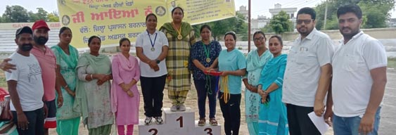 ਪੰਜਾਬ ਸਰਕਾਰ ਵੱਲੋਂ ਕਰਵਾਈਆਂ ਜਾ ਰਹੀਆਂ ‘ਖੇਡਾਂ ਵਤਨ ਪੰਜਾਬ ਦੀਆਂ’ ਤਹਿਤ ਬਰਨਾਲਾ ’ਚ ਜ਼ਿਲਾ ਪੱਧਰੀ ਮੁਕਾਬਲੇ ਜਾਰੀ ਹਨ। ਇਸ ਤਹਿਤ ਅਥਲੈਟਿਕਸ ਵਿਚ 21 ਤੋਂ 40 ਉਮਰ ਵਰਗ ਮਹਿਲਾ ’ਚ 5000 ਮੀਟਰ ਦੌੜ ’ਚ ਕੁਲਵਿੰਦਰ ਕੌਰ ਨੇ ਪਹਿਲਾ ਸਥਾਨ ਹਾਸਲ ਕੀਤਾ। 800 ਮੀਟਰ ਦੌੜ ’ਚ ਰਿੰਪੀ ਕੌਰ ਤੇ 400 ਮੀਟਰ ’ਚ ਪੂਜਾ ਨੇ ਪਹਿਲਾ ਸਥਾਨ ਹਾਸਲ ਕੀਤਾ। 21 ਤੋਂ 40 ਸਾਲ ਉਮਰ ਵਰਗ ਪੁਰਸ਼ ਸ਼੍ਰੇਣੀ ’ਚ ਲੰਬੀ ਛਾਲ ਵਿਚ ਜੇਜੀ ਸਿੰਘ ਨੇ ਪਹਿਲਾ ਸਥਾਨ ਹਾਸਲ ਕੀਤਾ। 5000 ਮੀਟਰ ਦੌੜ ’ਚ ਵਿੱਕੀ ਸਿੰਘ ਨੇ ਪਹਿਲਾ, 800 ਮੀਟਰ ’ਚ ਜਸਪ੍ਰੀਤ ਸਿੰਘ ਤੇ 100 ਮੀਟਰ ’ਚ ਜਸਕਰਨ ਸਿੰਘ ਨੇ ਪਹਿਲਾ ਸਥਾਨ ਹਾਸਲ ਕੀਤਾ। 21 ਤੋਂ 40 ਸਾਲ ਮਹਿਲਾ ਵਰਗ ’ਚ ਲੰਬੀ ਛਾਲ ’ਚ ਹਰਦੀਪ ਕੌਰ ਨੇ ਪਹਿਲਾ ਸਥਾਨ ਹਾਸਲ ਕੀਤਾ। 21 ਤੋਂ 40 ਉਮਰ ਵਰਗ ਸ਼ਾਟਪੁਟ ’ਚ ਮਨਜੀਤ ਕੌਰ ਨੇ ਪਹਿਲਾ, ਡਿਸਕਸ ਥ੍ਰੋਅ ’ਚ ਅਮਰਜੀਤ ਕੌਰ ਨੇ ਪਹਿਲਾ ਸਥਾਨ ਹਾਸਲ ਕੀਤਾ। ਪੁਰਸ਼ ਵਰਗ ’ਚ ਸ਼ਾਟਪੁਟ ’ਚ ਗੁਰਵਿੰਦਰ ਸਿੰਘ ਨੇ ਪਹਿਲਾ ਤੇ ਡਿਸਕਸ ਥ੍ਰੋਅ ’ਚ ਬਲਵਿੰਦਰ ਸਿੰਘ ਨੇ ਪਹਿਲਾ ਸਥਾਨ ਹਾਸਲ ਕੀਤਾ। ਇਸ ਦੌਰਾਨ 40 ਤੋਂ 50 ਉਮਰ ਵਰਗ ’ਚ ਸ਼ਾਟਪੁਟ ’ਚ ਕੋਚ ਗੁਰਵਿੰਦਰ ਕੌਰ ਨੇ ਪਹਿਲਾ ਸਥਾਨ ਹਾਸਲ ਕੀਤਾ। ਗੱਤਕੇ ’ਚ ਅੰਡਰ 21 ਸਾਲ ਉਮਰ ਵਰਗ ’ਚ ਸਿੰਗਲ ਸੋਟੀ ਮੁਕਾਬਲੇ ਵਿਚ ਲੱਕੀ ਸਿੰਘ (ਮੀਰੀ ਪੀਰੀ ਗੱਤਕਾ ਅਖਾੜਾ ਹੰਡਿਆਇਆ) ਨੇ ਪਹਿਲਾ ਤੇ ਫ੍ਰੀ ਸੋਟੀ ਵਿਅਕਤੀਗਤ ਮੁਕਾਬਲੇ ’ਚ ਹੰਡਿਆਇਆ ਦੇ ਗਗਨਦੀਪ ਸਿੰਘ ਨੇ ਪਹਿਲਾ ਸਥਾਨ ਹਾਸਲ ਕੀਤਾ।