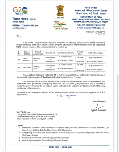 ਬਰਨਾਲਾ 14 ਜੂਨ ( ਨਿਰਮਲ ਸਿੰਘ ਪੰਡੋਰੀ )-ਸਿਹਤ ਵਿਭਾਗ ਬਰਨਾਲਾ ਵਲੋਂ ਇਕ ਹੋਰ ਕੀਰਤੀਮਾਨ ਸਥਾਪਤ ਕਰਦਿਆਂ “ਲਕਸ਼ਿਆ ਪ੍ਰੋਗਰਾਮ” ਤਹਿਤ ਦੇਸ਼ ਭਰ ਦੇ ਮੁਕਾਬਲਿਆਂ ਵਿੱਚ ਸਿਵਲ ਹਸਪਤਾਲ ਬਰਨਾਲਾ ਦੇ ਜੱਚਾ-ਬੱਚਾ ਵਿੰਗ ਨੇ ਉੱਤਮ ਸੇਵਾਵਾਂ ਦੇਣ ਬਦਲੇ ਕੇਂਦਰ ਸਰਕਾਰ ਤੋਂ ਉੱਚ ਗੁਣਵੱਤਾ ਦਾ ਪ੍ਰਮਾਣ ਪੱਤਰ ਹਾਸਲ ਕੀਤਾ ਹੈ। ਇਸ ਸਬੰਧੀ ਵਧੇਰੇ ਜਾਣਕਾਰੀ ਦਿੰਦਿਆਂ ਸਿਵਲ ਸਰਜਨ ਬਰਨਾਲਾ ਡਾ. ਜਸਬੀਰ ਸਿੰਘ ਔਲਖ ਨੇ ਕਿਹਾ ਕਿ ਇਸ ਪ੍ਰਾਪਤੀ ਲਈ ਸਿਵਲ ਹਸਪਤਾਲ ਬਰਨਾਲਾ ਦੇ ਸੀਨੀਅਰ ਮੈਡੀਕਲ ਅਫ਼ਸਰ ਡਾ. ਜੋਤੀ ਕੌਸ਼ਲ , ਸਮੂਹ ਡਾਕਟਰ ਸਾਹਿਬਾਨ , ਅਧਿਕਾਰੀ ਤੇ ਕਰਮਚਾਰੀਆਂ ਵਧਾਈ ਦੇ ਪਾਤਰ ਹਨ, ਜਿਨ੍ਹਾਂ ਦੀ ਸਖ਼ਤ ਮਿਹਨਤ ਸਦਕਾ ਅਤੇ ਡਿਪਟੀ ਕਮਸ਼ਨਰ ਪੂਨਮਦੀਪ ਕੌਰ ਦੀ ਅਗਵਾਈ ਹੇਠ ਇਹ ਸਨਮਾਨ ਸਿਵਲ ਹਸਪਤਾਲ ਬਰਨਾਲਾ ਦੇ ਜੱਚਾ-ਬੱਚਾ ਵਿੰਗ ਨੂੰ ਮਿਲਿਆ ਹੈ। ਨੋਡਲ ਅਫ਼ਸਰ ਕਮ ਜ਼ਿਲ੍ਹਾ ਪਰਿਵਾਰ ਭਲਾਈ ਅਫਸਰ ਡਾ. ਪ੍ਰਵੇਸ਼ ਕੁਮਾਰ ਨੇ ਦੱਸਿਆ ਕਿ ਇਸ ਪ੍ਰਮਾਣ ਪੱਤਰ ਸਬੰਧੀ ਮਿਤੀ 25 ਮਈ ਨੂੰ ਜੱਚਾ ਬੱਚਾ ਹਸਪਤਾਲ ਦੀ ਸਰਕਾਰ ਦੇ ਨਿਰਧਾਰਤ ਮਾਪਦੰਡਾਂ ਅਨੁਸਾਰ ਜਾਂਚ ਕੀਤੀ ਗਈ ਸੀ। ਇਸ ਜਾਂਚ ਅਧੀਨ ਲੇਬਰ ਰੂਮ ਨੂੰ 84 ਫੀਸਦੀ ਅਤੇ ਆਪ੍ਰੇਸ਼ਨ ਥੀਏਟਰ ਨੂੰ 85 ਫੀਸਦੀ ਅੰਕਾਂ ਨਾਲ ਮਰੀਜ਼ਾਂ ਨੂੰ ਚੰਗੀਆਂ ਸਹੂਲਤਾਂ ਦੇਣ ਬਦਲੇ ਇਹ ਪ੍ਰਮਾਣ ਪੱਤਰ ਮਿਲਿਆ ਹੈ।ਡਾ. ਜੋਤੀ ਕੌਸ਼ਲ ਨੇ ਕਿਹਾ ਕਿ ਜੱਚਾ ਬੱਚਾ ਸਿਹਤ ਸੇਵਾਵਾਂ ਸਰਕਾਰ ਦੀਆਂ ਮੁਢਲੀਆਂ ਤੇ ਅਹਿਮ ਸੇਵਾਵਾਂ ਹਨ, ਜਿਨ੍ਹਾਂ ਪ੍ਰਤੀ ਸਿਵਲ ਹਸਪਤਾਲ ਬਰਨਾਲਾ ਦਾ ਸਮੂਹ ਸਟਾਫ ਆਪਣੀ ਨੈਤਿਕ ਜ਼ਿੰਮੇਵਾਰੀ ਸਮਝਦਿਆਂ ਸਿਵਲ ਹਸਪਤਾਲ ਬਰਨਾਲਾ ਵਿੱਚ ਆਉਣ ਵਾਲੇ ਮਰੀਜ਼ਾਂ ਨੂੰ ਉੱਤਮ ਸਿਹਤ ਸੇਵਾਵਾਂ ਦੇਣ ਲਈ ਵਚਨਬੱਧ ਹੈ। ਡਾ. ਭਵਨਜੋਤ ਸਿੰਘ ਸਿੱਧੂ ਏ.ਐਚ.ਏ. ਸਿਵਲ ਹਸਪਤਾਲ ਬਰਨਾਲਾ ਨੇ ਕਿਹਾ ਕਿ ਸਿਵਲ ਹਸਪਤਾਲ ਬਰਨਾਲਾ ਦੇ ਜੱਚਾ ਬੱਚਾ ਵਿੰਗ ਲਈ ਇਹ ਪ੍ਰਾਪਤੀ ਮਾਣਯੋਗ ਹੈ।