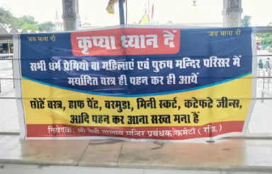 ਚੰਡੀਗੜ੍ਹ 10 ਜੁਲਾਈ-ਪੰਜਾਬ ਦੇ ਇੱਕ ਵਿਸ਼ਵ ਪ੍ਰਸਿੱਧ ਮੰਦਰ ਵਿੱਚ, ਮੰਦਰ ਕਮੇਟੀ ਵੱਲੋਂ ਡਰੈੱਸ ਕੋਡ ਲਾਗੂ ਕਰ ਦਿੱਤਾ ਗਿਆ ਜਿੱਥੇ ਹੁਣ ਸ਼ਰਧਾਲੂ ਮੰਦਰ ਦੀ ਮਰਿਆਦਾ ਅਨੁਸਾਰ ਹੀ ਕੱਪੜੇ ਪਾ ਕੇ ਜਾ ਸਕਣਗੇ। ਜਲੰਧਰ ਸਥਿਤ ਦੇਵੀ ਤਲਾਬ ਮੰਦਿਰ ਵਿੱਚ ਡਰੈੱਸ ਕੋਡ ਲਾਗੂ ਕੀਤਾ ਗਿਆ ਹੈ, ਇਸ ਸਬੰਧੀ ਇੱਕ ਬੋਰਡ ਵੀ ਮੰਦਿਰ ਵਿੱਚ ਲਗਾਇਆ ਗਿਆ ਹੈ ਜਿਸ ਉੱਪਰ ਲਿਖਿਆ ਹੈ ਕਿ ਮੰਦਰ ਕੈਂਪਸ ਵਿੱਚ ਹਾਫ ਪੈਂਟ, ਮਿੰਨੀ ਸਕਰਟ, ਬਰਮੁੰਡਾ, ਫਟੀਆਂ ਜੀਨਾਂ ਆਦਿ ਪਾ ਕੇ ਆਉਣਾ ਸਖ਼ਤ ਮਨਾਂ ਹੈ । ਪ੍ਰਬੰਧਕਾਂ ਦਾ ਕਹਿਣਾ ਹੈ ਕਿ ਲੋਕ ਆਧੁਨਿਕੀਕਰਨ ਦੇ ਨਾਂ ‘ਤੇ ਅਜਿਹੇ ਕੱਪੜੇ ਪਾਕੇ ਮੰਦਰ ਆਉਂਦੇ ਹਨ ਜੋ ਧਾਰਮਿਕ ਭਾਵਨਾਵਾਂ ਦੇ ਉਲਟ ਹਨ ।
