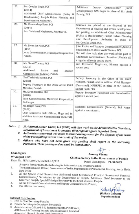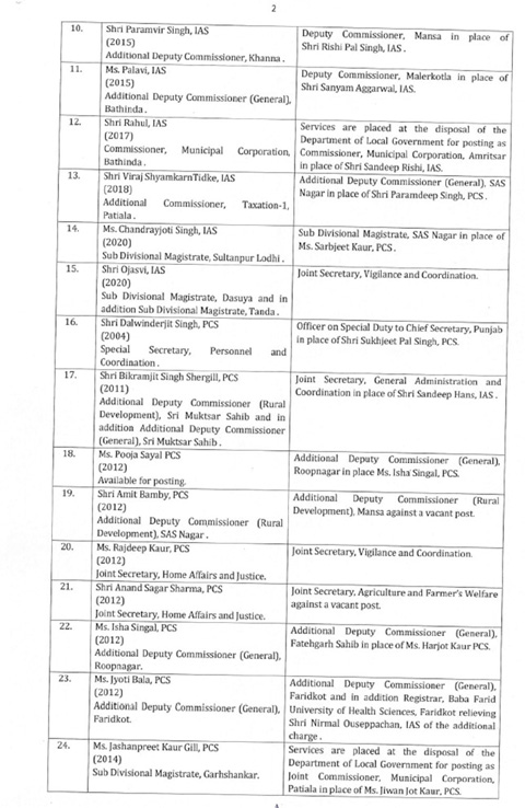ਪੰਜਾਬ ਦੇ 31 IAS ਅਤੇ PCS ਅਧਿਕਾਰੀਆਂ ਦੀਆਂ ਬਦਲੀਆਂ…ਪੜ੍ਹੋ ਸੂਚੀ…!